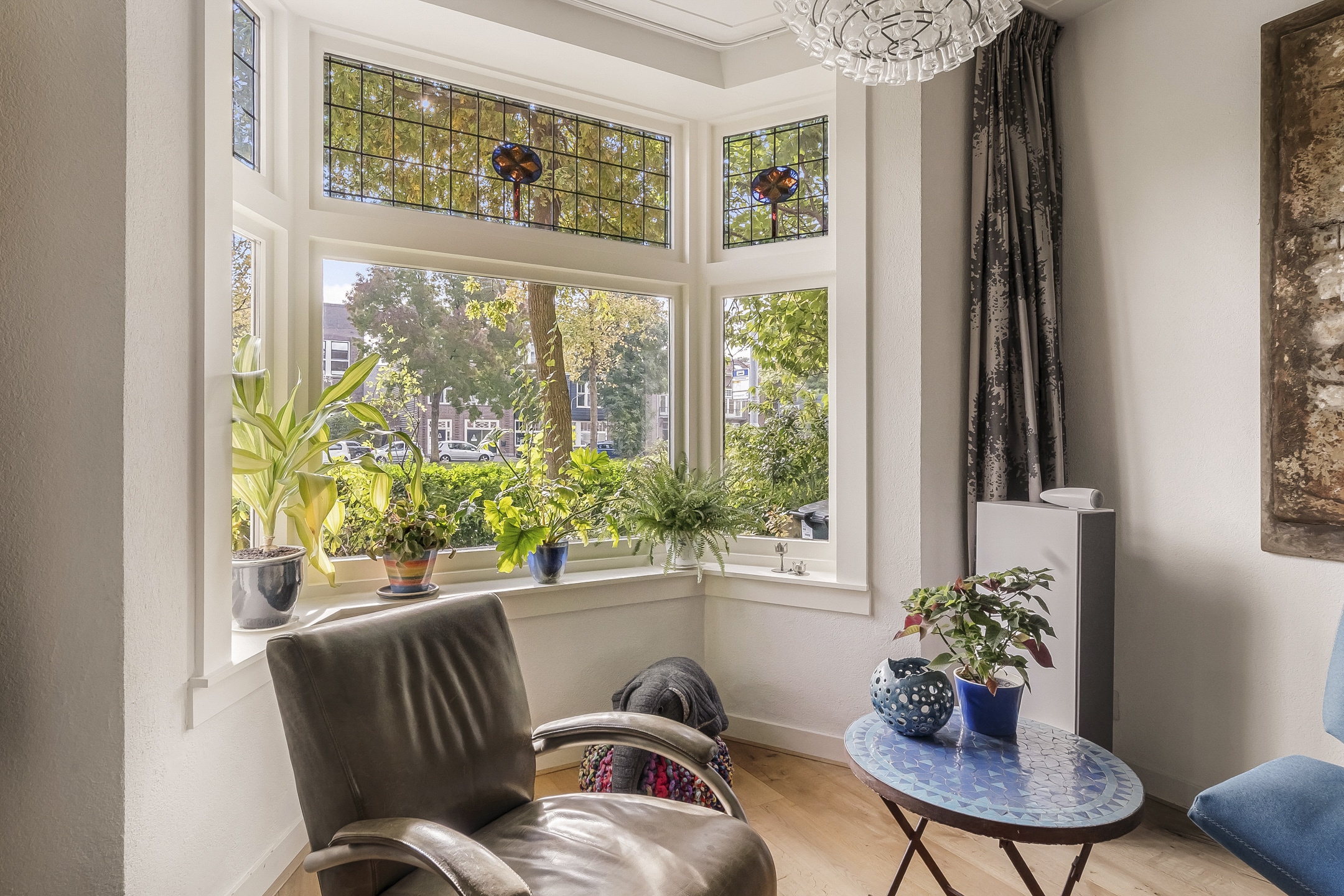 – Hoge plafonds, kamer-en-suite, glas-in-lood, zonnige erker