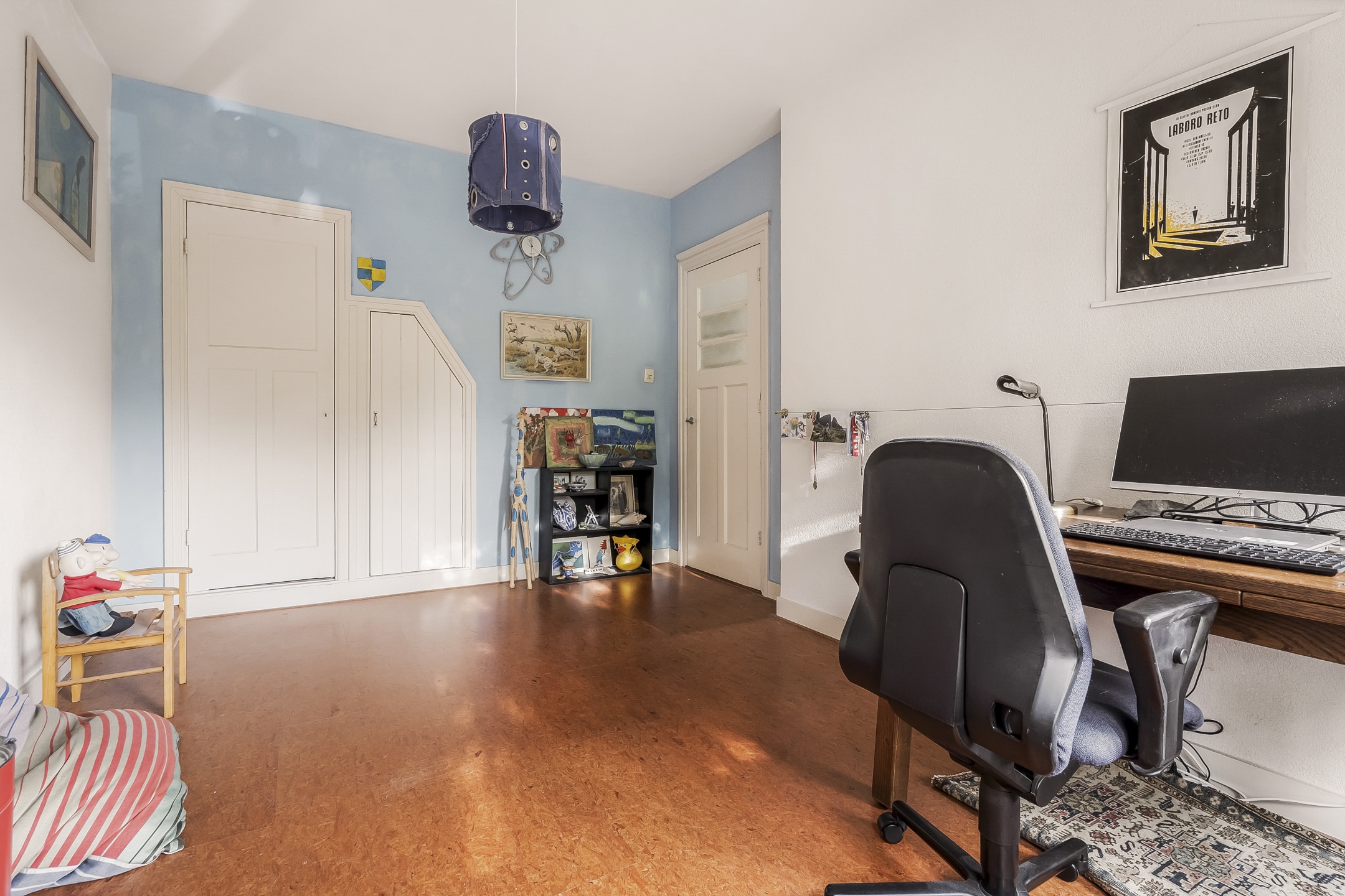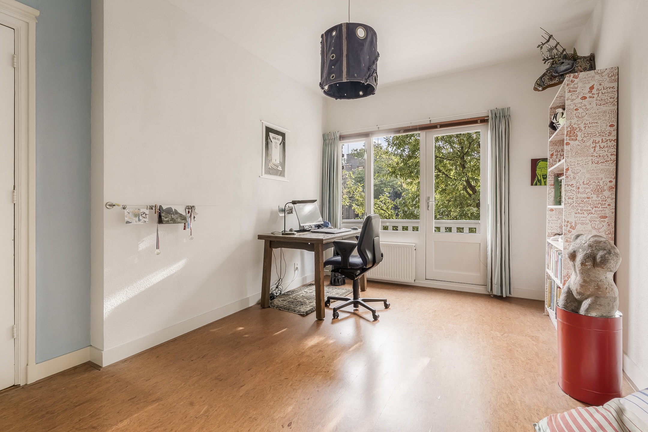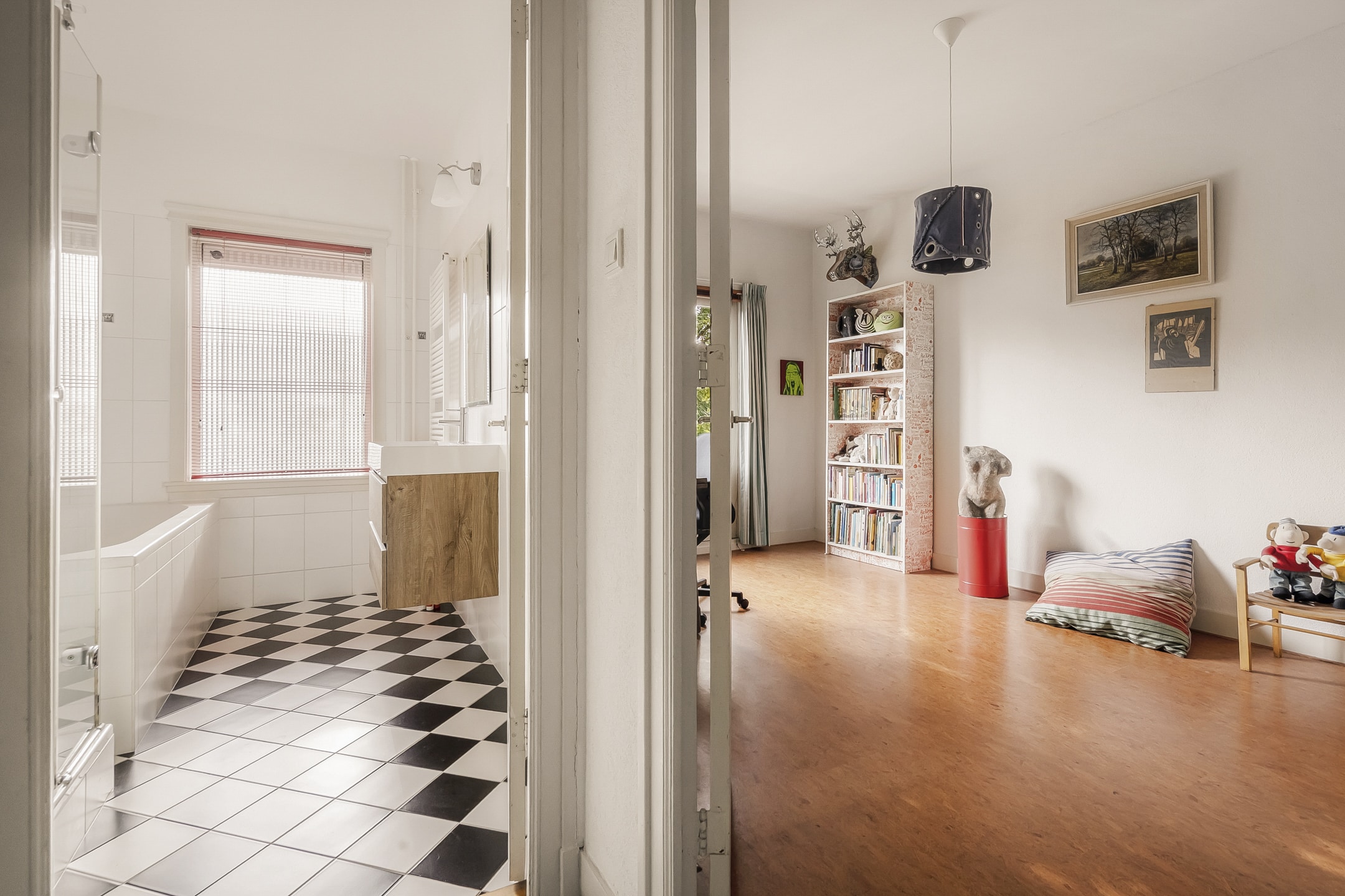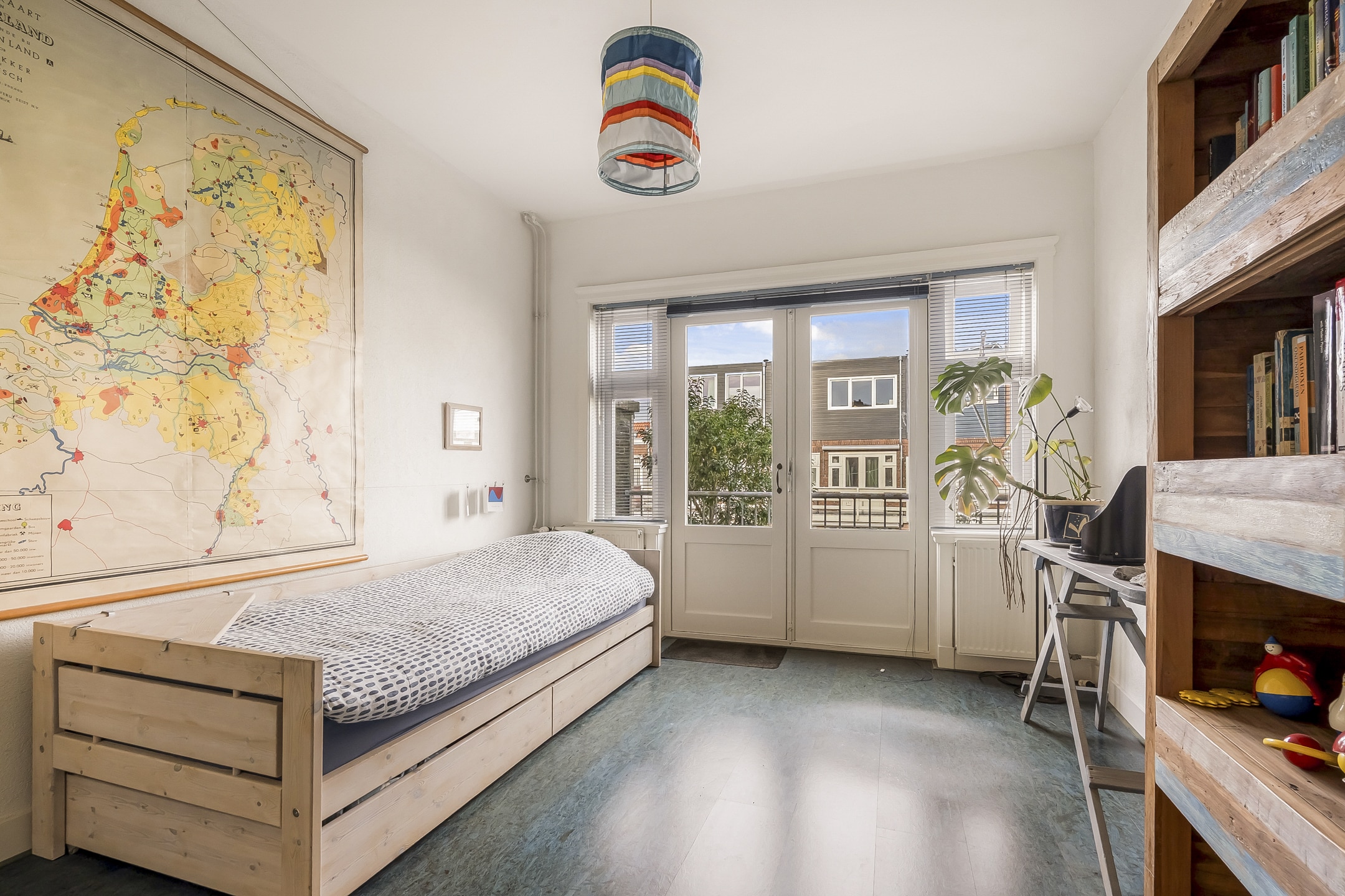 Een ware verrassing: een hoge, open zolderruimte (tot 3,20 meter) met zichtbare kapconstructie, origineel dakbeschot en royale dakkapel met berging onder het dak. Nu ingericht als royale (ouder)slaapkamer met wastafel en toilet. Deze verdieping biedt volop mogelijkheden – ideaal als extra slaapkamers, werkplek of hobbyruimte.