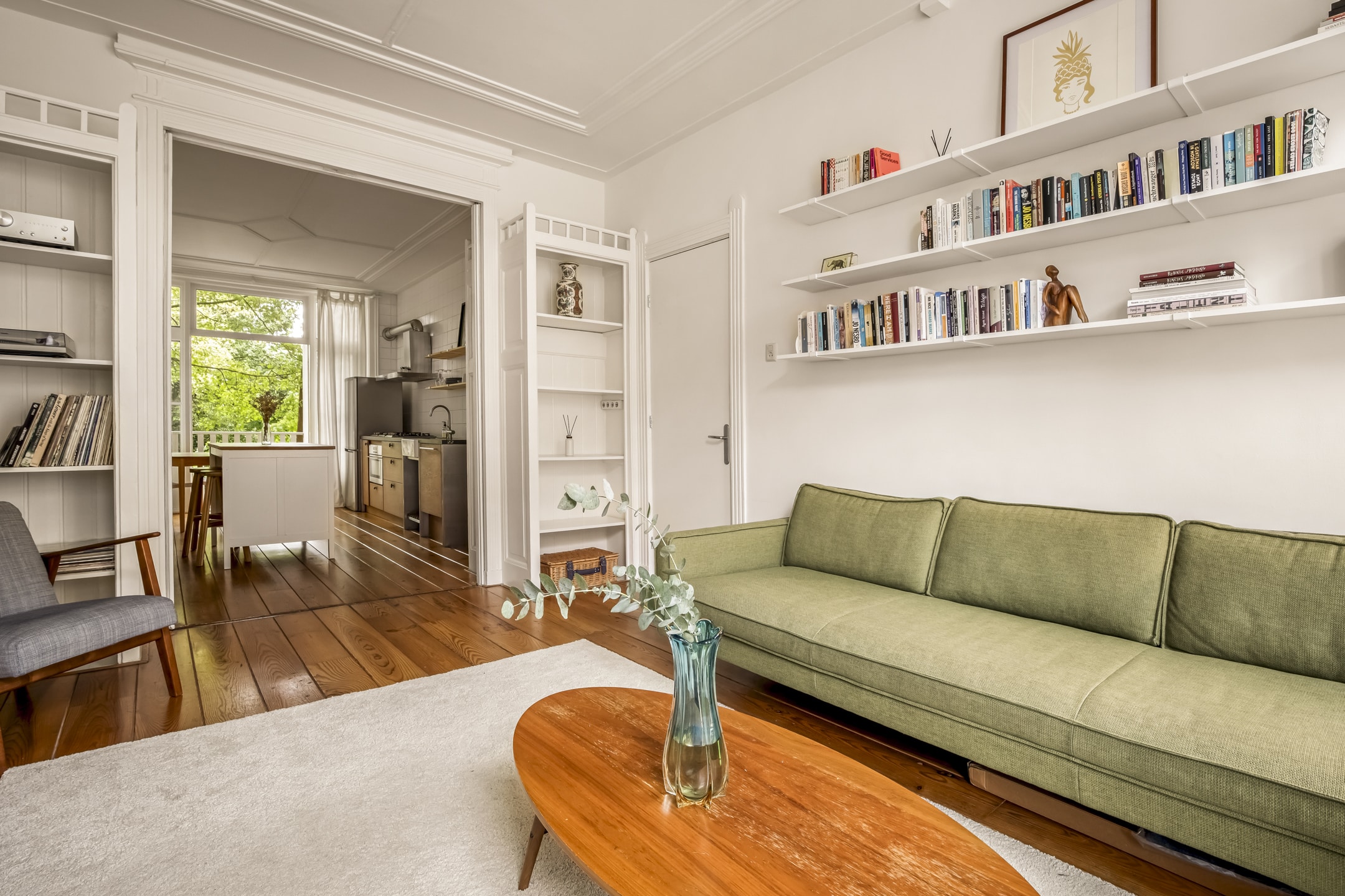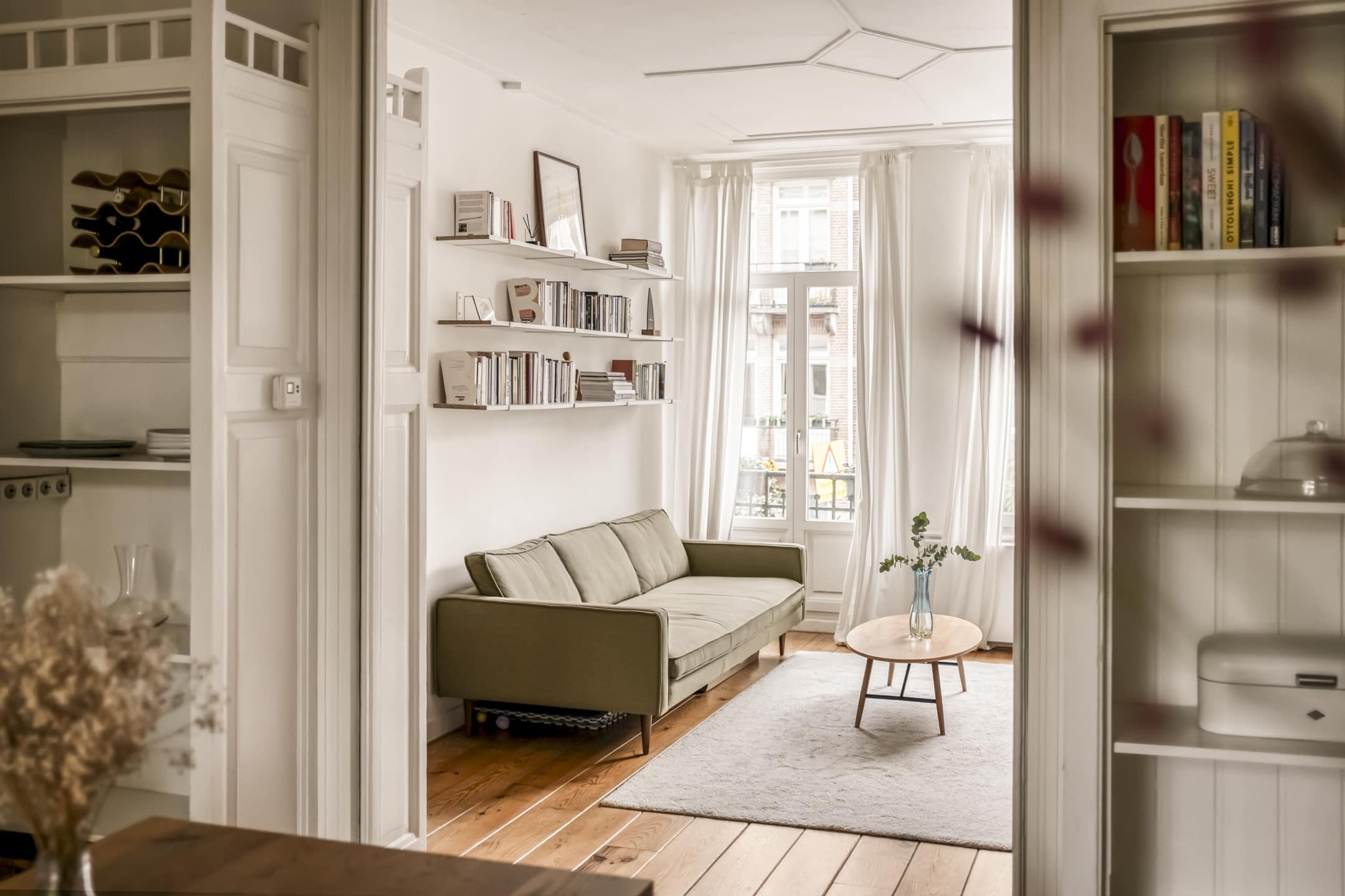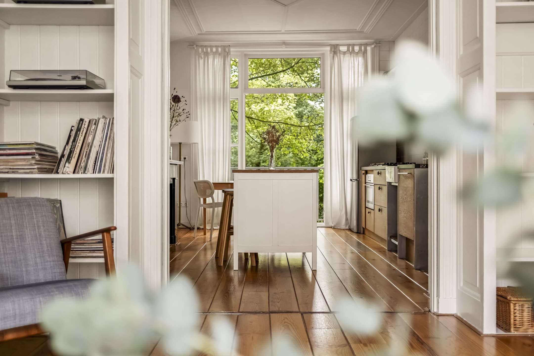 Vooral de hoge plafonds, de twee originele schouwen en de authentieke ensuite deuren zorgen voor de perfecte look & feel. Het appartement kenmerkt zich door een praktische indeling, waarbij de centrale entree alle ruimtes met naadloos met elkaar verbindt.