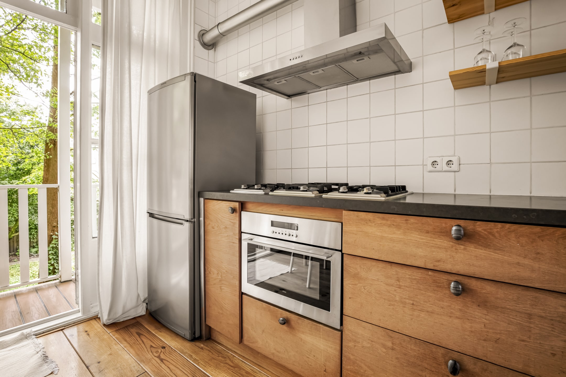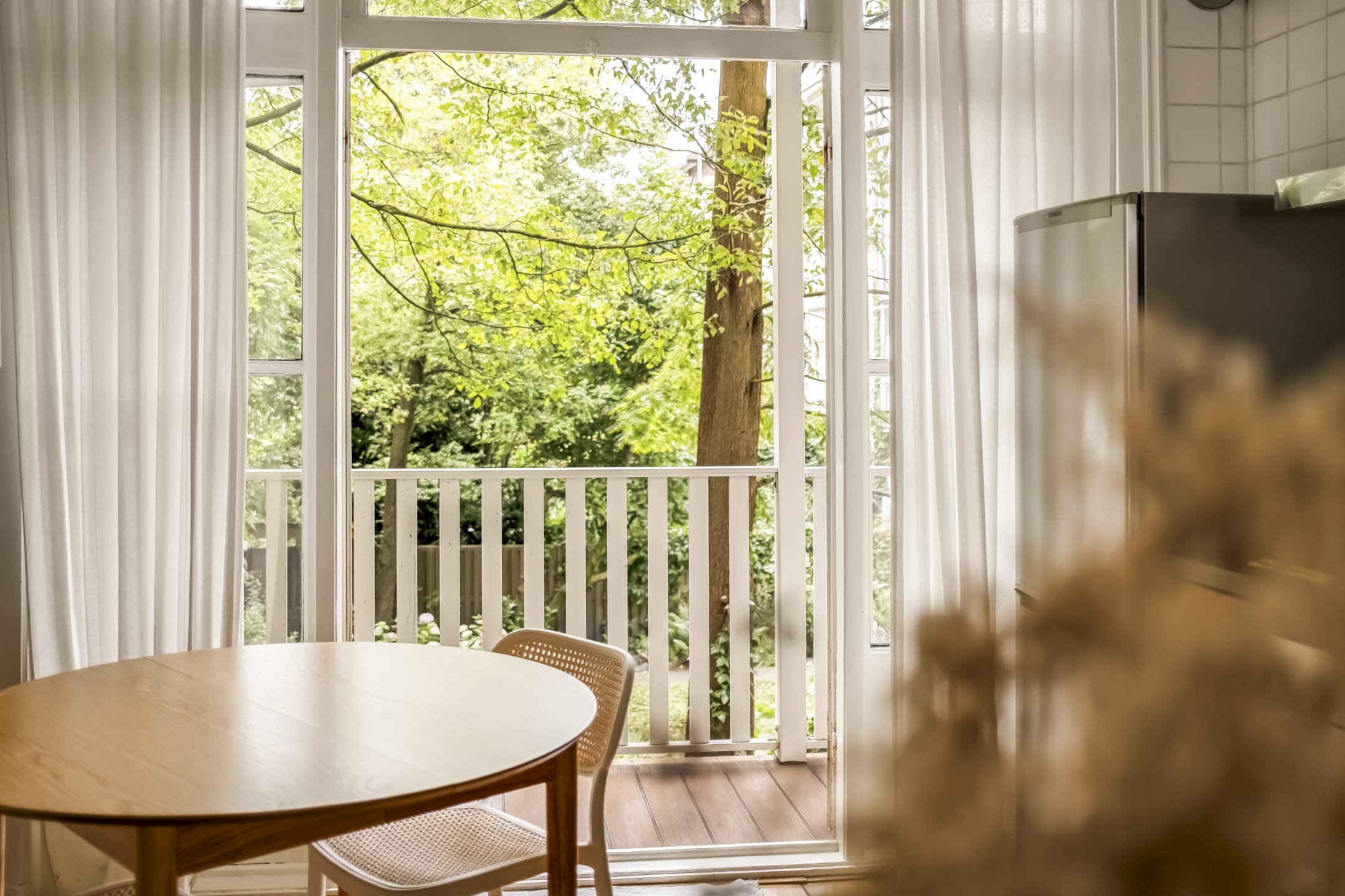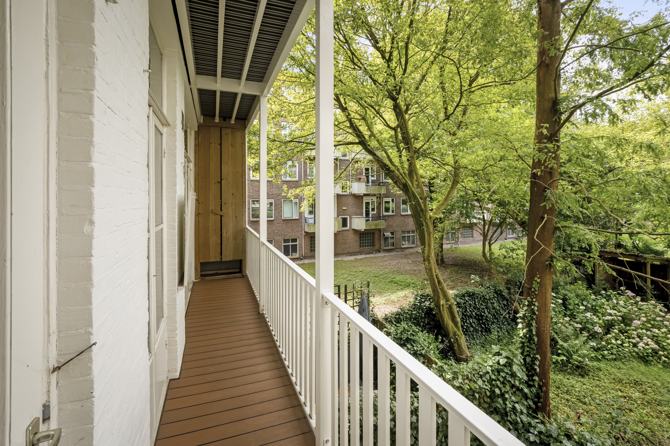 Het ruime balkon met vrij zicht (vernieuwd in 2023) grenst aan de gezellige woonkeuken en reikt over de gehele breedte van de woning! Door de ligging van de woning is er zowel aan de voor- als achterzijde veel privacy.