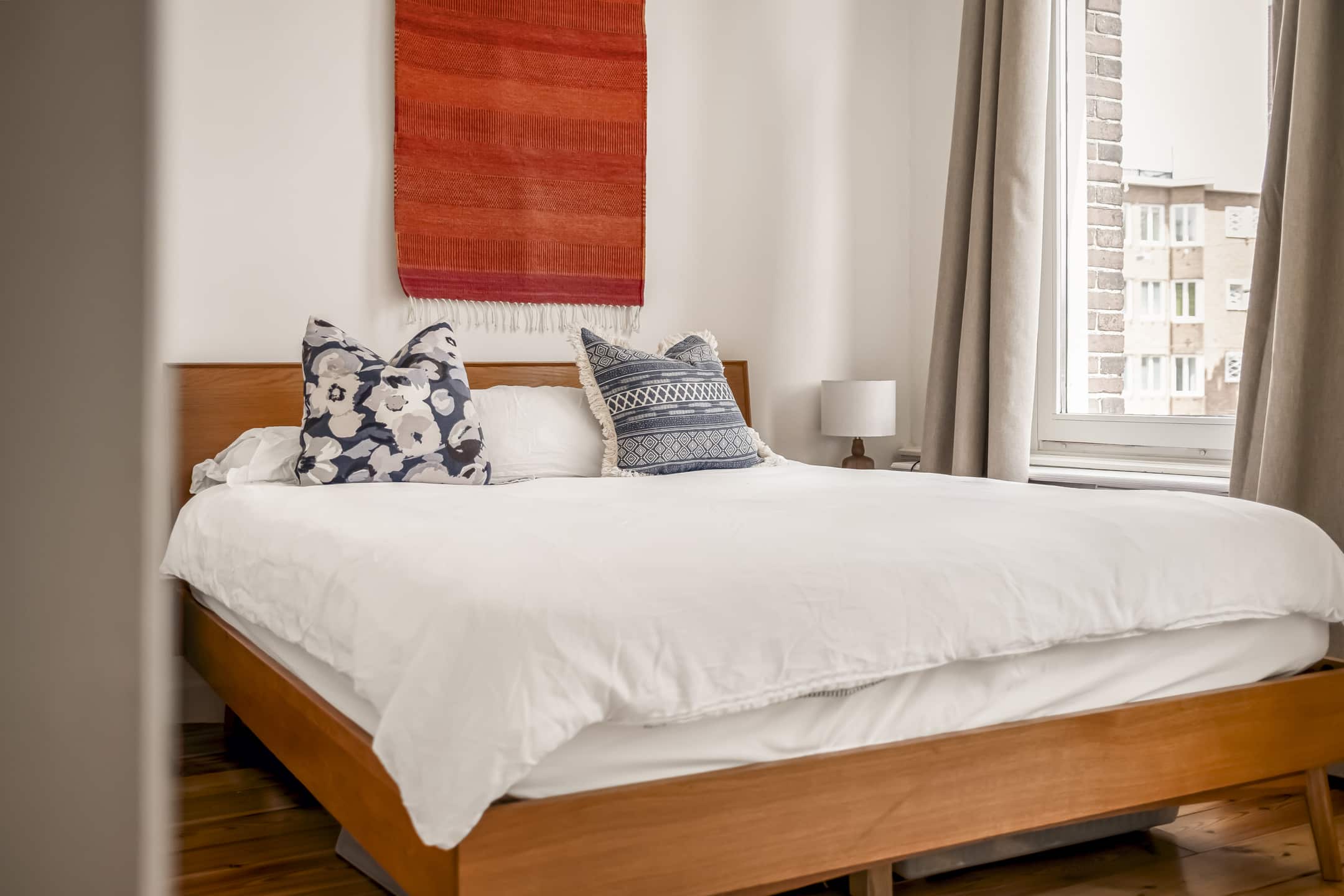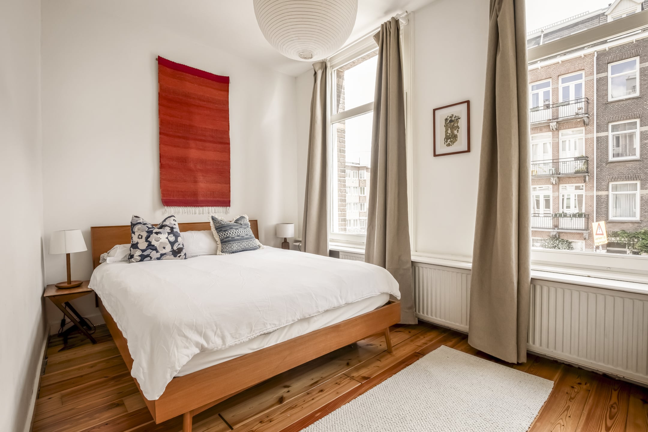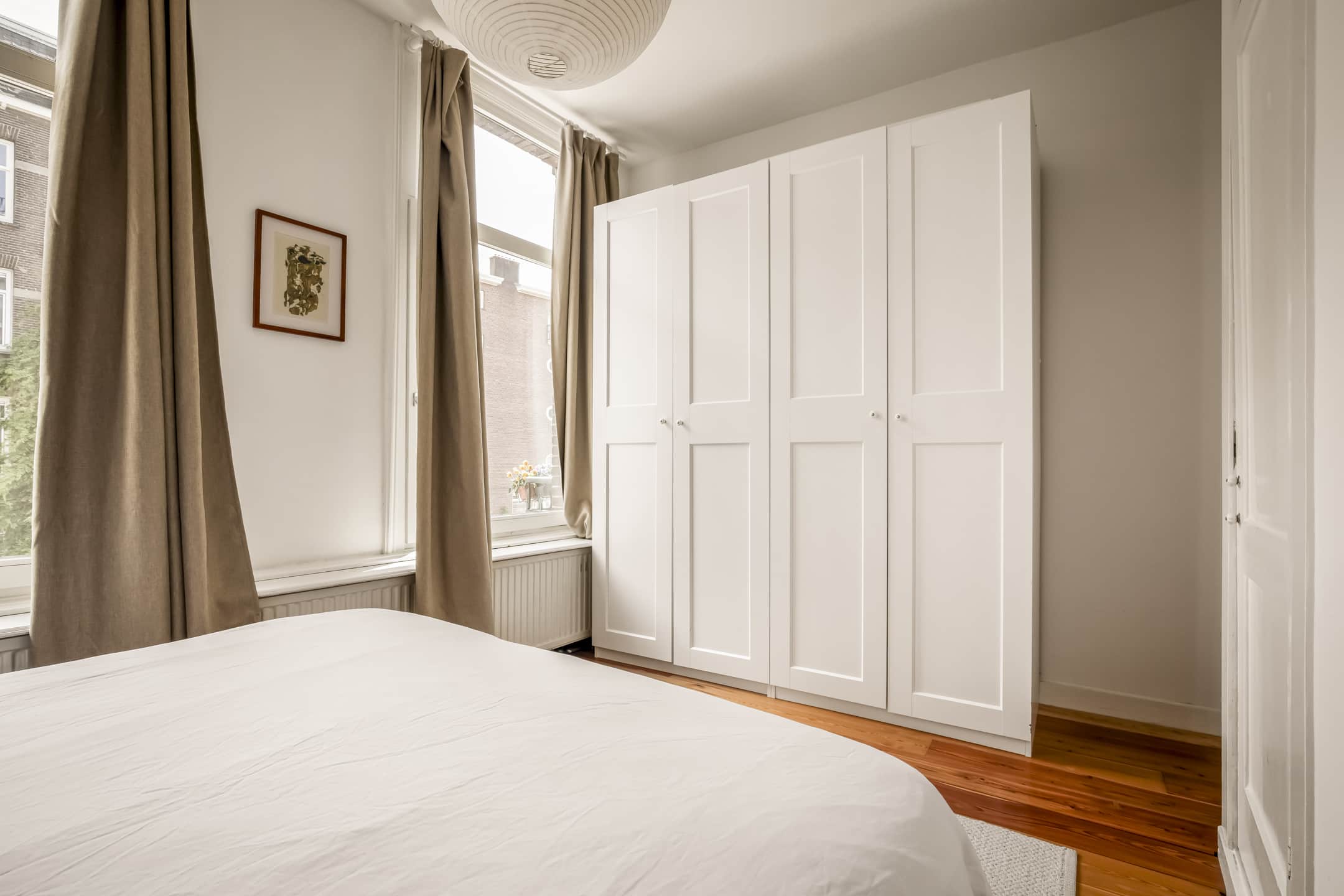 Het appartement beschikt over twee slaapkamers. De hoofdslaapkamer is ruim genoeg voor een riante kledingkast en bevindt zich aan de voorzijde met uitzicht op de straat. De tweede slaapkamer treft men aan de achterzijde. Vanuit hier is er tevens toegang tot het balkon, waardoor deze kamer uitermate geschikt is als studio/werkruimte. De badkamer met douche, ligbad, wastafelmeubel en aansluiting voor wasmachine en droger bevindt zich eveneens aan de achterzijde, tussen de tweede slaapkamer en de woonkeuken. Ook vanuit deze ruimte is er directe toegang tot het balkon.