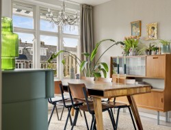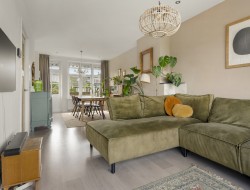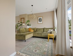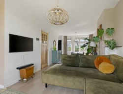 1e etage: Overloop, toilet met fonteintje, de L-vormige lichte woonkamer geeft je een nooit verveeld uitzicht over de polder aan de overzijde, je ziet hier de mooiste zonsopkomsten! De moderne semi-open keuken is voorzien van allerhande inbouwapparatuur waaronder een nieuwe koelkast, vaatwasser en een 4-pits gaskookplaat met afzuigkap. Zowel via de woonkamer als de keuken kom je op het knusse en heerlijk zonnige balkon. Het balkon ligt op het westen en is een fijne plek om te genieten van de middag- en avondzon.